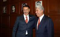 Carlos Abascal Carranza y Francisco Ramírez Acuña durante la ceremonia de entrega-recepción en Bucareli