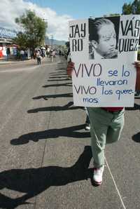 A la cabeza de la marcha, las decenas de familiares cuyos parientes se encuentran detenidos o desaparecidos no cejaban de corear su reclamo para que fueran liberados. Como si fuera un regreso a los años 70, decían los oradores que encabezaban la movilización, se ha regresado a la estrategia de guerra sucia, por ello volvieron las consignas de entonces: "¡Vivos se los llevaron, vivos los queremos!"