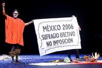 Y fue entonces que Jesusa y Liliana sacaron una manta: "México 2006. Sufragio efectivo, no imposición". Y todos en el teatro corearon esa consigna, y otra más: "¡Es un honor, estar con Obrador!". Y una más: "¡Felipe, entiende, el pueblo no te quiere!"