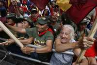 Simpatizantes del presidente Hugo Chávez se manifestaron ayer frente al Consejo Nacional Electoral, en Caracas, a la espera de la declaración oficial del triunfo del gobernante en la elección del domingo pasado, sin embargo, por la noche el órgano decidió posponer la proclamación de la victoria chavista