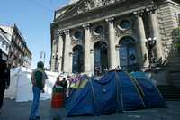 Vendedores ambulantes instalaron un plantón en las escalinatas del recinto de Donceles y Allende de la Asamblea Legislativa, la víspera de la toma de protesta a Marcelo Ebrard como jefe de Gobierno del Distrito Federal