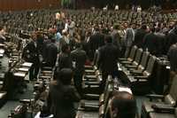 Las bancadas de PRD y PRI, al abandonar ayer la sesión en San Lázaro