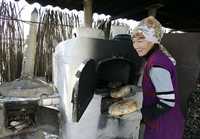 Una mujer kazaja durante la diaria labor de hornear el pan, al este de Almaty