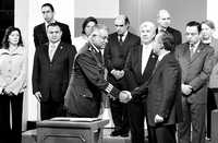 El presidente Felipe Calderón y su equipo de gobierno, tras la firma del decreto de austeridad en Los Pinos, el pasado 3 de diciembre