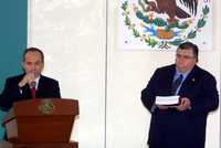 El presidente Felipe Calderón y el secretario de Hacienda, Agustín Carstens, durante la presentación del paquete económico 2007 en la residencia oficial de Los Pinos, el pasado martes