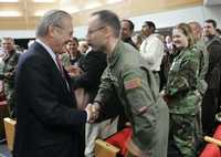 Rumsfeld se despidió hoy del Pentágono, donde ofreció un último intento para defender la guerra y abogar por continuar con más de lo mismo. Salir "precipitadamente", advirtió, inyectaría "inestabilidad en la situación allá en ese país (Irak), en esa región, eso, creo yo, sería un error terrible", e insistió por la "paciencia".