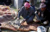 Iraquíes examinan el cuerpo de uno de los seis niños muertos durante una incursión aérea de Estados Unidos en un poblado del norte