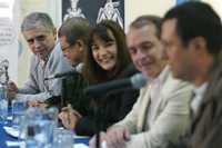 Rafael Barajas, Rafael Pineda, María Elena Cantú y Amerigo Incalcaterra, durante el foro Caricatura y derechos humanos, organizado por el Centro de Información de la Organización de las Naciones Unidas