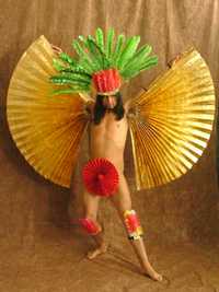 Aspecto del vestuario de Motezuma, creado por el mexicano Humberto Spíndola, en su taller de Coyoacán
