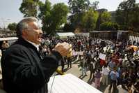 Agustín Rodríguez, líder del STUNAM, durante una manifestación a las afueras del Palacio Legislativo de San Lázaro para exigir que no haya recortes al gasto educativo.FOTO José Carlo González