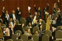 Miembros de la fracción perredista en la Cámara de Diputados votan durante la sesión ordinaria de ayer