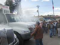 Entrega de camiones de servicio público por el jefe delegacional de Tláhuac, Gilberto Ensástiga Santiago