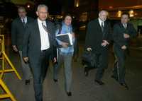 Los rectores de las universidades de Veracruz, Raúl Arias; de Guadalajara, José Trinidad Padilla, y de Hidalgo, Luis Gil Borja, acompañados por la directora del CIESAS, Virginia Acosta, en imagen del 12 de diciembre cuando se dirigían a un encuentro con Josefina Vázquez Mota, titular de la SEP
