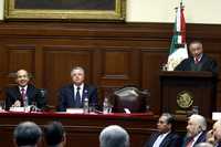 La reacción de los soldados generó indignación entre los presentes, muchos les gritaron: "¡pinches abusivos!". La camioneta que transportaba a Calderón, quien sonriente alcanzó a ver a quienes le aplaudieron a su paso, salió de la Corte sin que su ocupante se enterara de la presencia de los inconformes, pues éstos ya habían sido alejados del lugar.