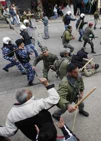 Fuerzas de seguridad palestinas que obedecen al presidente Mahmoud Abbas reprimen en Ramallah a simpatizantes de Hamas.