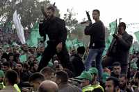 Guardaespaldas del primer ministro Ismail Haniyeh custodian una manifestación del grupo islámico realizada ayer en la ciudad de Gaza