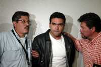 El joyero Antonio Guzmán López, centro, fue detenido por agentes mexiquenses cerca de las Torres de Satélite, en Naucalpan