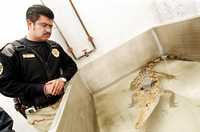 Al final de la jornada, después de haber arriesgado su integridad física, policías capitalinos sometieron a un cocodrilo de río, de casi metro y medio de largo, que desde hace más de diez años fungía como "centinela" de una vecindad ubicada en el número 237 de la calle Rosario, en la delegación Venustiano Carranza.