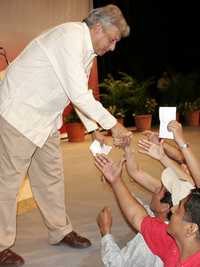 Tuxtla Gutierrez, Chis., 17 de diciembre. Al terminar la primera etapa de su gira por las capitales del país, Andrés Manuel López Obrador se reunió con el gobernador de Chiapas, Juan Sabines Guerrero, quien en diversas ocasiones se ha desmarcado del movimiento del tabasqueño.