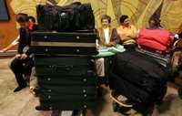Pasajeros de Air Madrid esperan ser transferidos a otros vuelos para poder llegar a sus destinos, en el aeropuerto internacional El Prat, de Barcelona