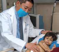 José Alfonso Yamamoto Nagano, jefe de trasplantes del Hospital de Pediatría del Centro Médico Nacional Siglo XXI del IMSS, con Ana Paula, de casi año y medio, a quien trasplantó, junto con un equipo multidisciplinario de casi 30 personas, un tercio del hígado de su madre. Es la primera vez que en el Seguro Social se hace un trasplante hepático de donador vivo
