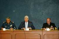 Los titulares de Gobernación, Marina, Seguridad Pública y de la Procuraduría General de la República dieron un mensaje conjunto en el salón Adolfo López Mateos, pero sin responder las preguntas de la prensa. Antes se habían reunido en privado con el presidente Felipe Calderón.
