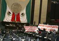 Diputados de varios grupos parlamentarios manifestaron, con pancartas, sus demandas de mayor presupuesto para determinados rubros