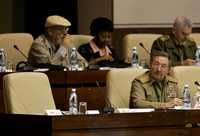 El presidente interino cubano, Raúl Castro (derecha, abajo), durante la reunión en La Habana de la unicamaral Asamblea Nacional del Poder Popular