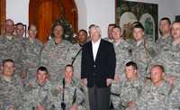 El nuevo jefe del Pentágono, Robert Gates, posa junto con soldados estadunidenses destacados en Campo Victoria, ayer en Bagdad