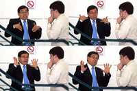 Los asambleístas del PRD, Víctor Hugo Círigo y Tomás Pliego, platican durante un receso de la sesión de ayer en la ALDF