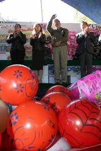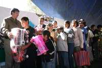 El jefe de Gobierno del DF, Marcelo Ebrard Casaubón, durante la entrega de juguetes y despensas a los trabajadores de la Central de Abasto