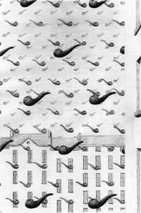 Los modernos amanuenses llevaban ya pliegos y forros impresos con el irónico texto que comienza así: "Vea usted su recién adquirida pipa. Es ahora blanca como la leche, pero dentro de algunos días tomará un tinte de crema; varios meses después será rubia dorada, y un día muy lejano, dentro de un año o quizás dos, tendrá su pipa un hermoso color castaño dorado. No hay porqué decirle que entonces usted será admirador entusiasta de su pipa; soñará en ella; la enseñará ufano a sus amistades con el loable propósito de darles envidia. La extraerá de vez en cuando y a hurtadillas de su estuche para extasiarse en su contemplación; fumará en ella como quien celebra el más solemne de los ritos; y así las cosas, un día u otro, ¡plam! Se le caerá al suelo y se le quebrará."