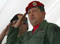 Hugo Chávez saluda a las tropas, ayer durante un desfile militar en Caracas