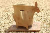 "Se crea una relación muy fuerte con los elementos; hablo del fuego, el viento, el agua y, sobre todo, la tierra". Y son precisamente esos materiales los que conforman las piezas de Kaminer, que por instantes asemejan perros, cocodrilos, elefantes, pescados, los seres imaginarios que habitan sus sueños.