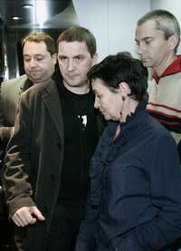 Arnaldo Otegi (segundo de izquierda a derecha), tras la conferencia de prensa en la que expresó su solidaridad con las víctimas del ataque