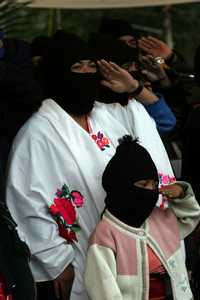 Bases de apoyo del Ejército Zapatista de Liberación Nacional, ayer en Oventic, Chiapas