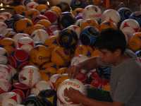 Sin embargo, cuando la actividad escasea la gente se mantiene con la costura de los balones, de lo que recibe 10 pesos por pieza. Los artesanos muy diestros cosen hasta seis pelotas en un día.