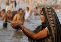 Ampliar la imagen Un devoto hindú reza durante el inicio de Half Pitcher Festival en Sangam, en donde cerca de medio millón de personas desafiaron las heladas temperaturas para limpiar sus pecados Foto: Reuters