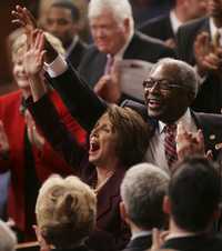 Nancy Pelosi y James Clyburn, durante la votación que ungió a la primera presidenta de la Cámara baja