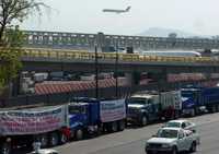 Más de 100 propietarios de tráileres, camiones de volteo y vehículos de carga de material de construcción estacionaron ayer sus unidades desde las 7 de la mañana sobre el bulevar Puerto Aéreo, en protesta porque la empresa Inmobiliaria R8 encargada por Aeropuertos y Servicios Auxiliares (ASA) y el Aeropuerto Internacional Benito Juárez de la Ciudad de México de alquilar esos automotores para el acarreo y transportación de elementos pétreos les adeuda 5 millones de pesos.