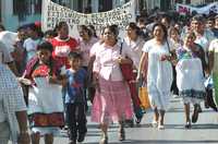 Integrantes de organizaciones campesinas y pesqueras marchan hacia la Plaza de la República de la ciudad de Campeche en repudio a la política agropecuaria de Felipe Calderón