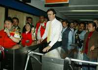Marcelo Ebrard, jefe de Gobierno del Distrito Federal, ingresó a la estación Zócalo del Metro con una de las 7 mil tarjetas que fueron entregadas ayer a jóvenes en situación de riesgo