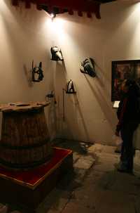 Tampoco se demerita el castigo atroz y cruel de las sillas llamadas de la zambullida, la del interrogatorio, putrefacción y tortura. Otros aparatos que llaman la atención son el potro "arranca testículos" y el anillo automortificante.