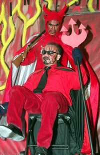 Entre demonios y santos, los internos del penal de Santa Martha Acatitla observan las representaciones de las pastorelas