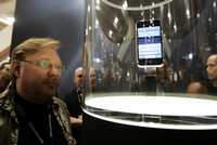 Jeff Gamet, de la revista de Internet The Mac Observer, mira el iPhone, el nuevo producto de MacWorld, durante la conferencia y exposición en San Francisco. Las especificaciones de los productos Mac son resguardados celosamente en el cuartel general de Apple