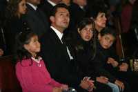 Enrique Peña Nieto, gobernador del estado de Mexico, con sus hijos Paulina, Nicole y Alejandro, durante la misa en la catedral de Toluca