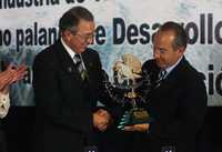 El presidente de la Canacintra, Cuauhtémoc Martínez García, entregó ayer un obsequio al presidente Felipe Calderón, en la inauguración de la Convención Nacional de Industriales