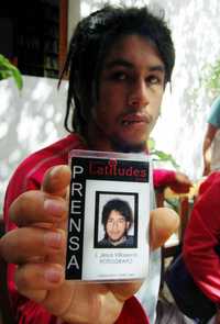 Oaxaca, Oax., 16 de enero. "Me detuvieron junto con otras dos personas supuestamente por haber agredido verbalmente y lanzar piedras a los parabrisas de las patrullas de los policías, que según dicen hacían un rondín, pero eso no es cierto, porque nos agarraron cuando levantaron violentamente el plantón de los familiares y de eso existen muchos testigos", señaló José de Jesús Villaseca Pérez.