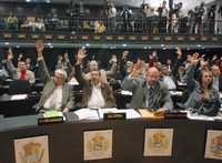 Miembros de la Asamblea Nacional de Venezuela durante la aprobación en primera instancia de la Ley Habilitante solicitada por el presidente Hugo Chávez para modificar por decreto preceptos constitucionales
