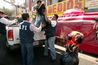 Elementos de la AFI y de la PFP realizaron ayer un operativo sorpresa en Iztapalapa y GAM, en el cual decomisaron discos y películas piratas. Aquí, en acción en la avenida Insurgentes Norte